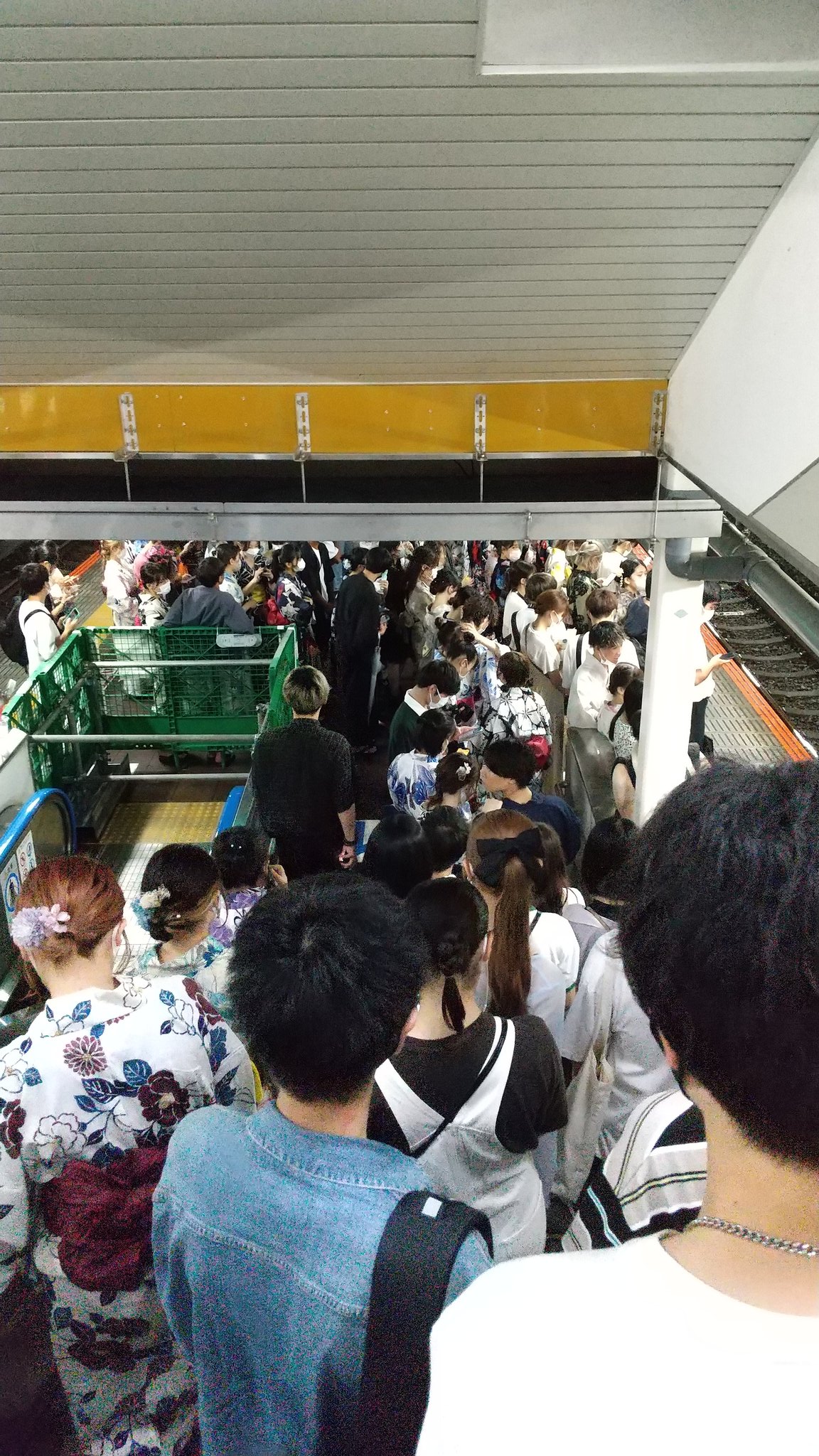 花火大会予定の浴衣姿多数の蒸し暑い日に。