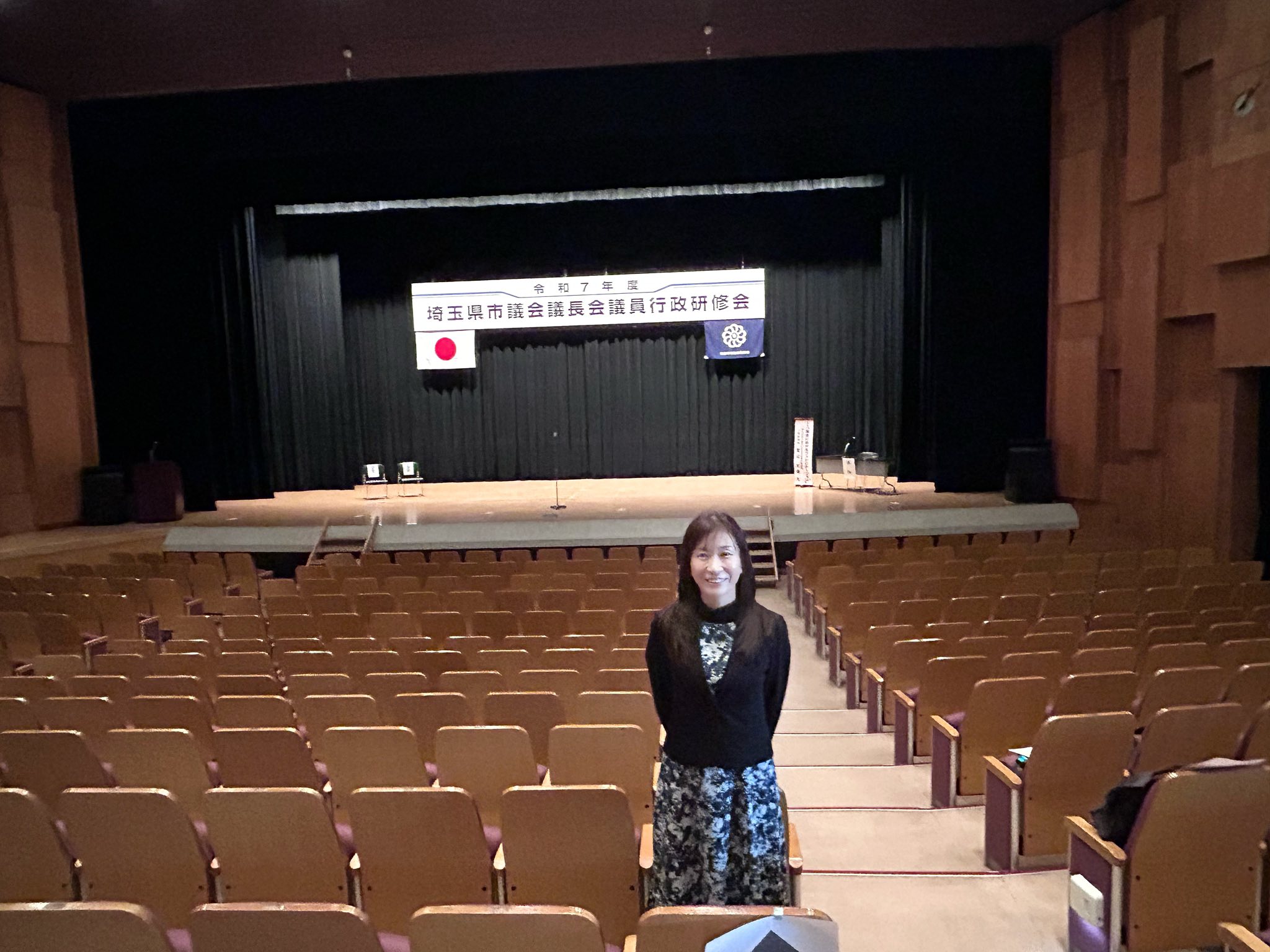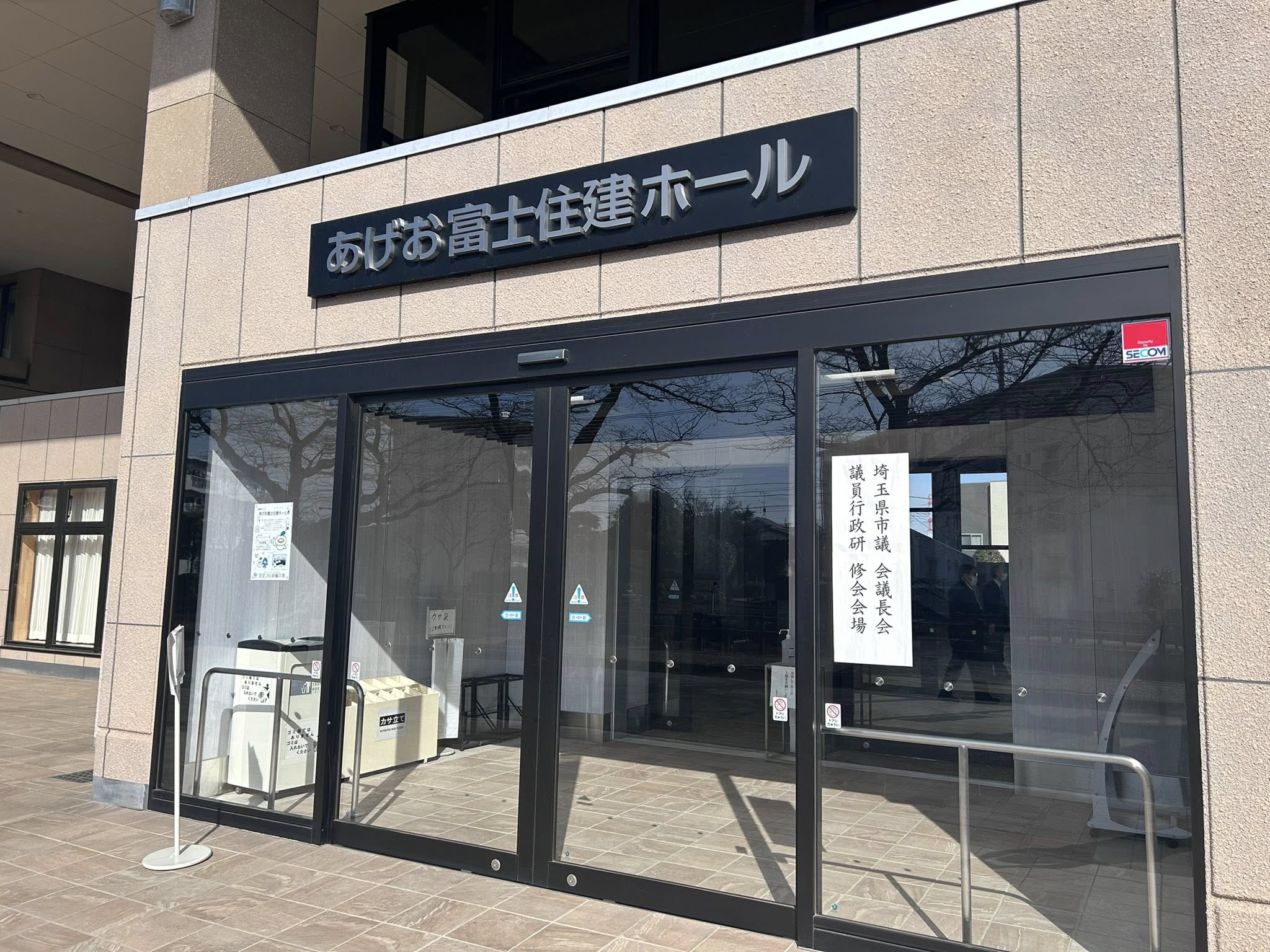 上尾市のあげお富士住建ホールに県内の市議会から正副議長が集い研修を受けました。