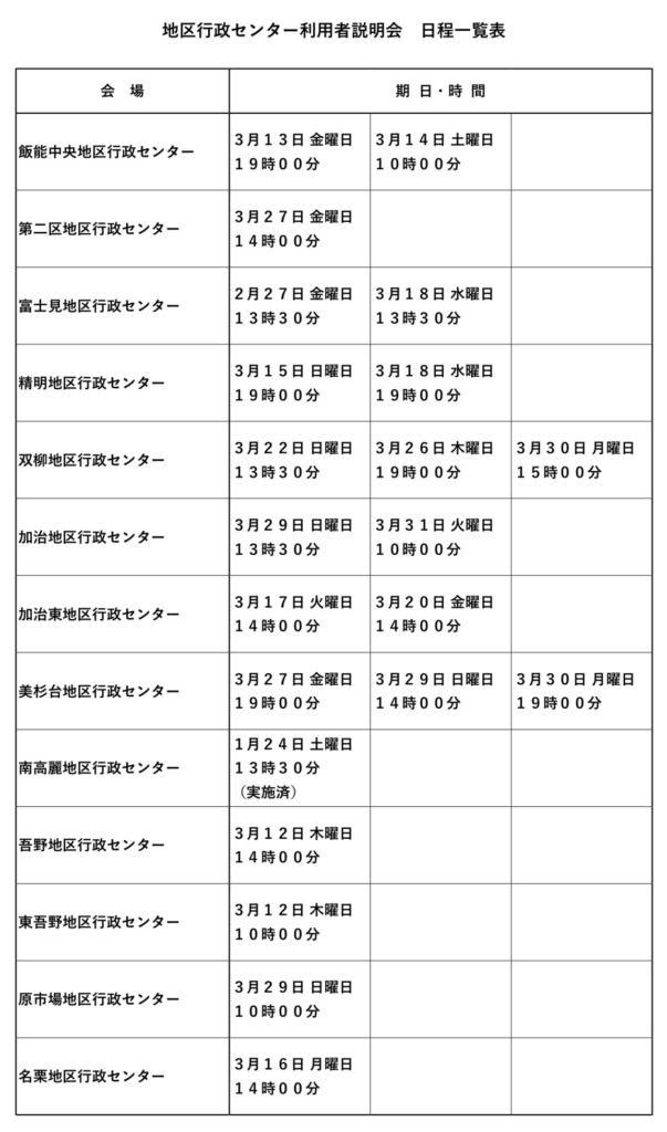 【地区行政センター 今後の施設利用に関する説明会が開催されます】