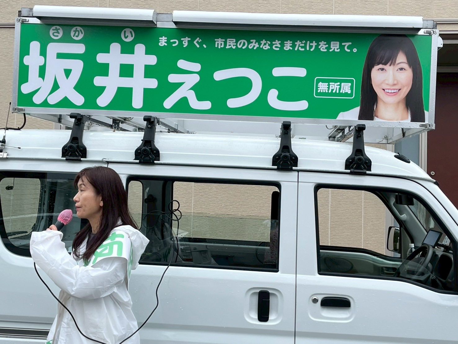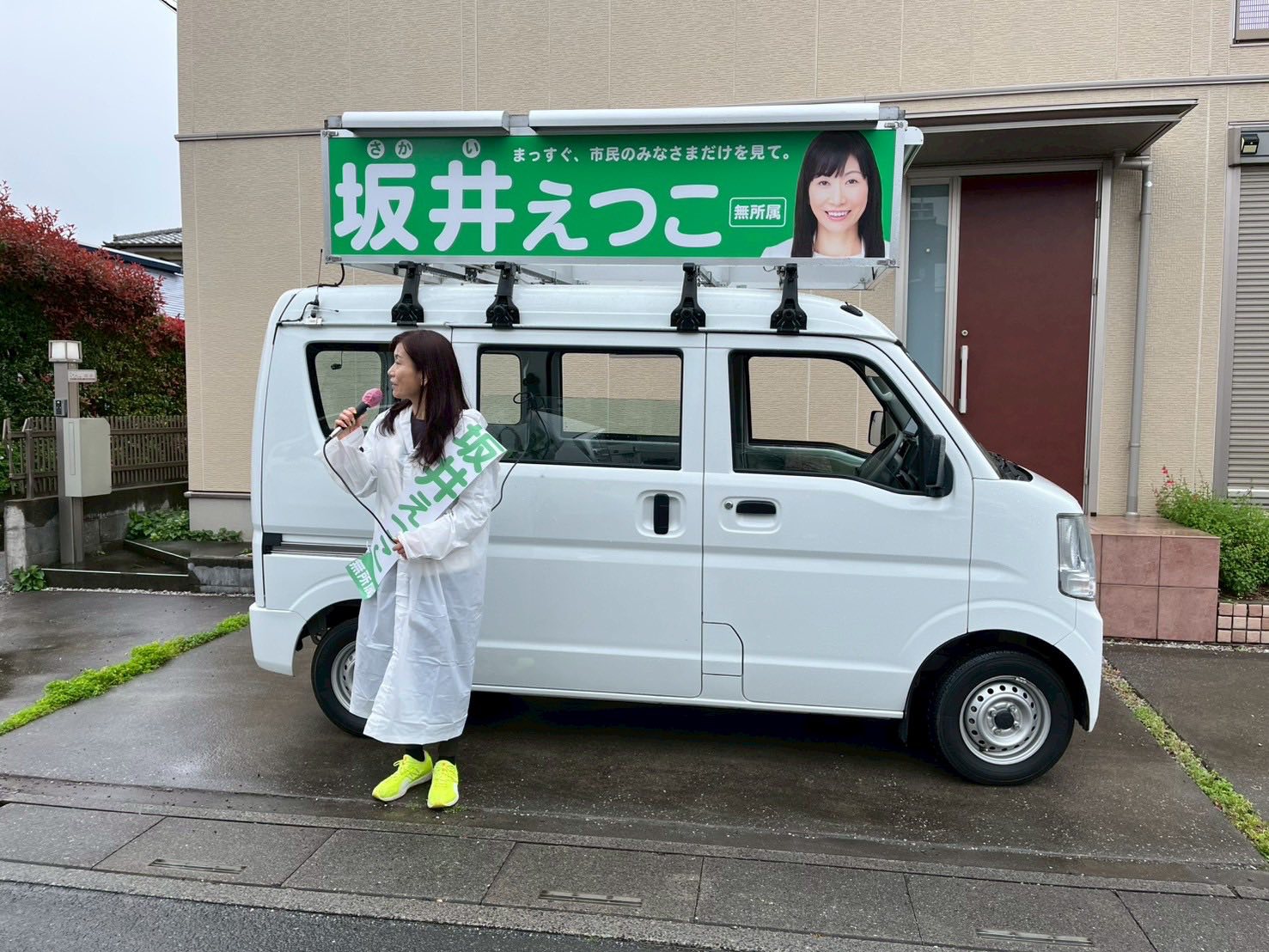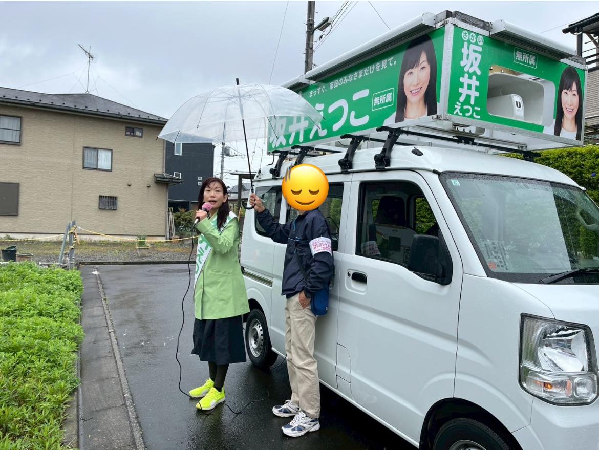 雨のなか、お集まりいただく有権者の皆様、ボランティアに入られている皆様に感謝いたします。皆様の思いを議会に反映できるよう、当選に向けて頑張ります。