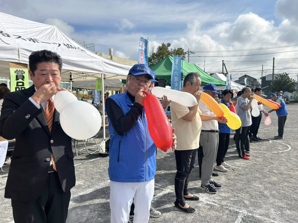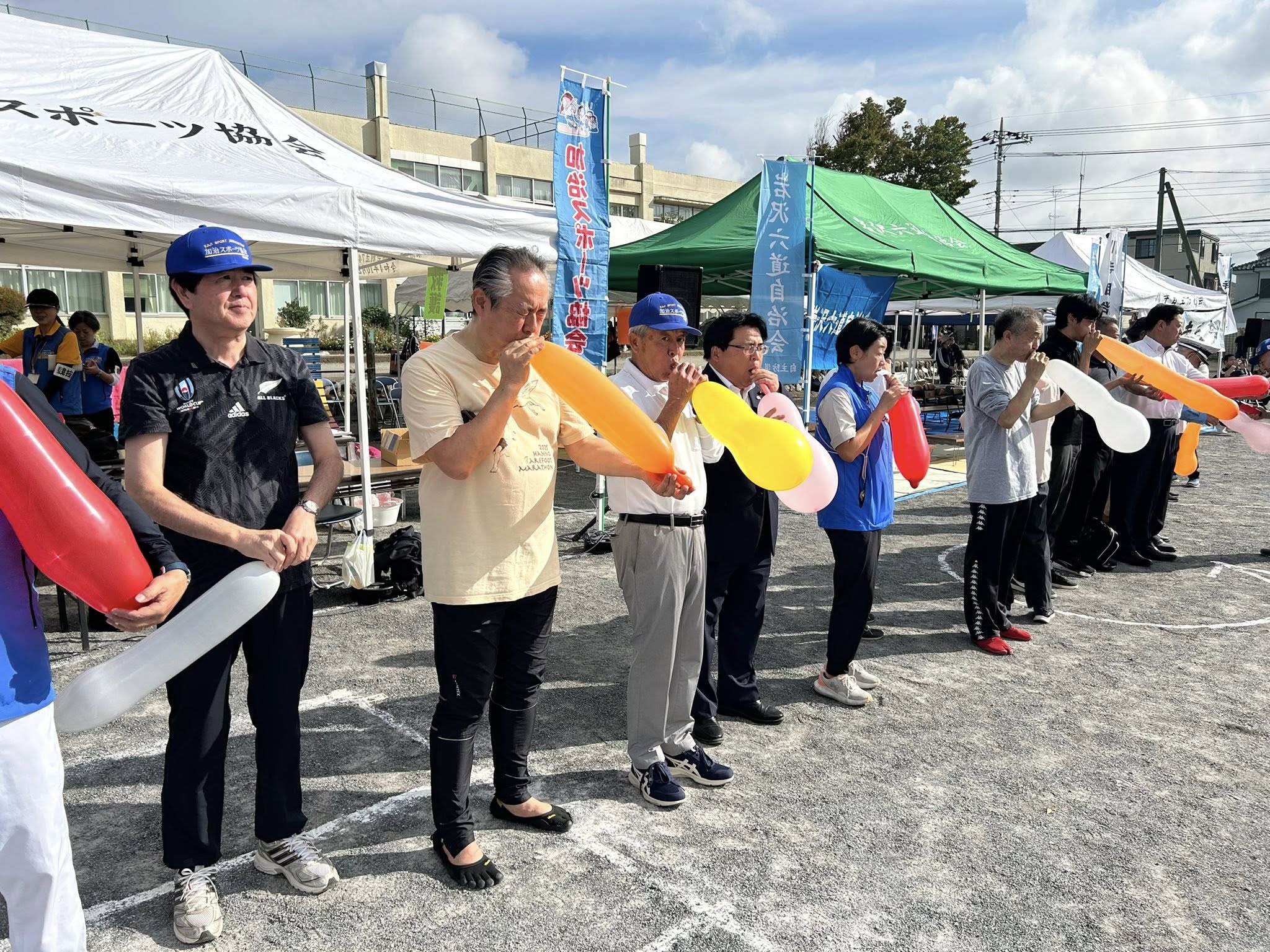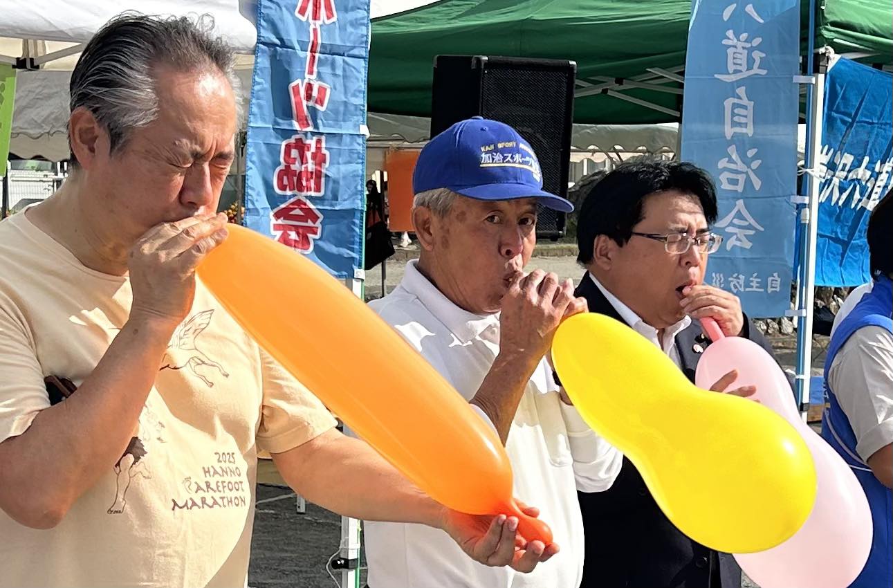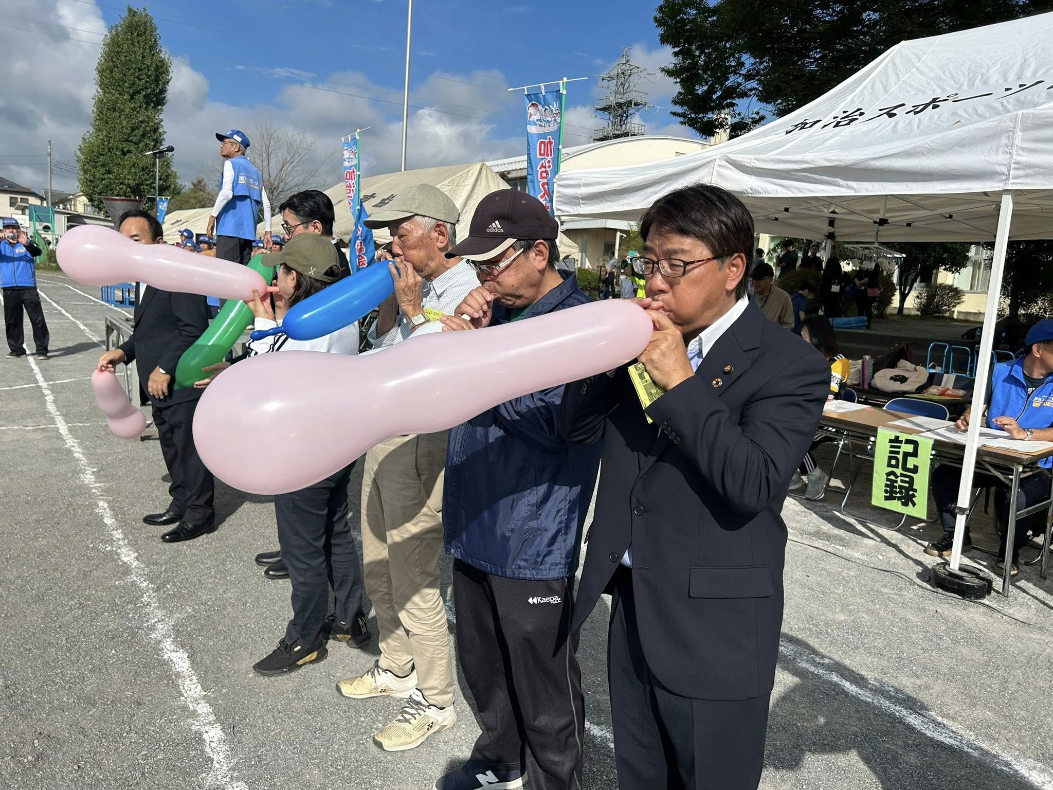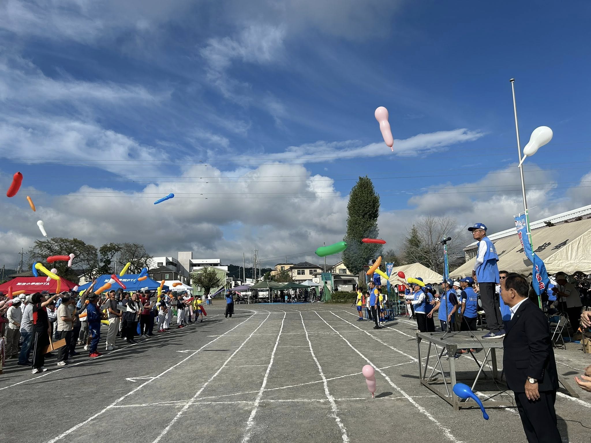 2025年10月5日 2025年11月3日 sakai 活動報告 加治スポーツ祭 加治スポーツ祭!加治地区の一大イベントです。晴天に恵まれ聖火リレーから盛大に開催され、白熱の競技に歓声が湧きました。誠におめでとうございます。 肺に自身がないので風船は見学でしたが、先輩だいじょぶだったかな。