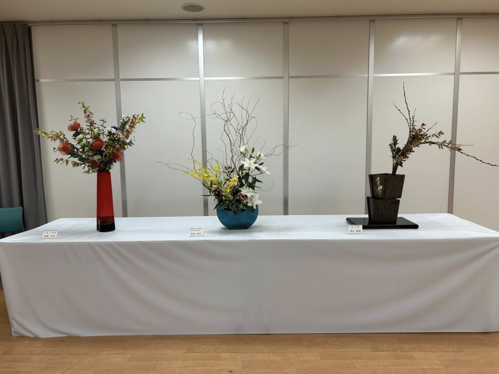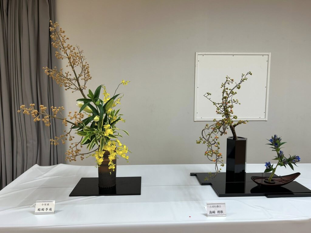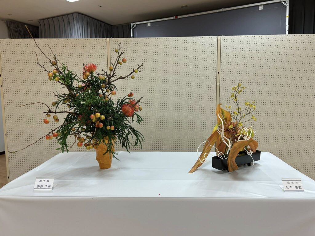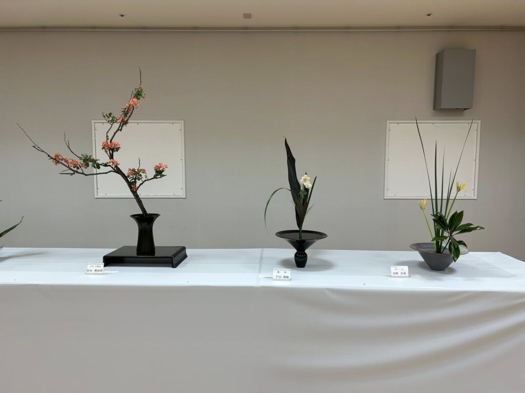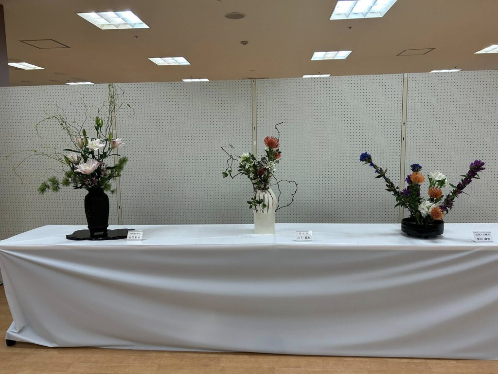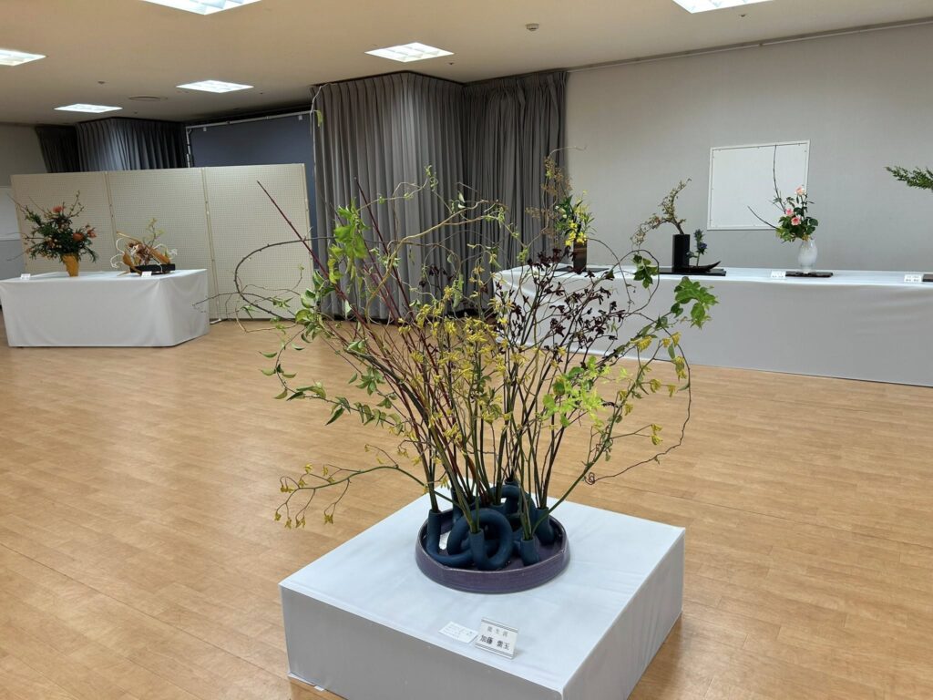 市内各流派の先生方の作品が一堂に展示される華道連盟展。