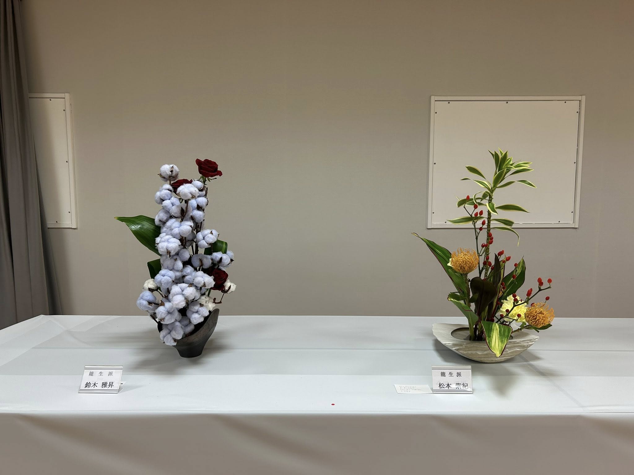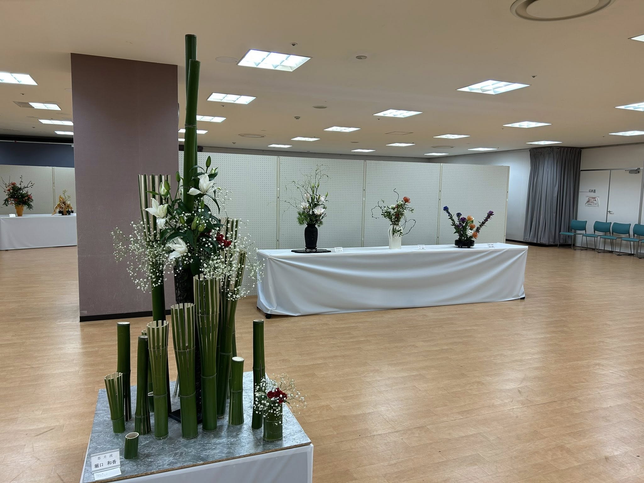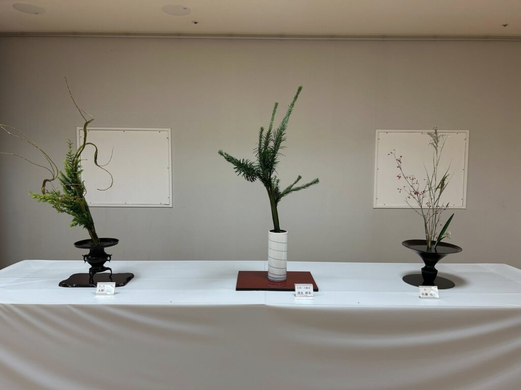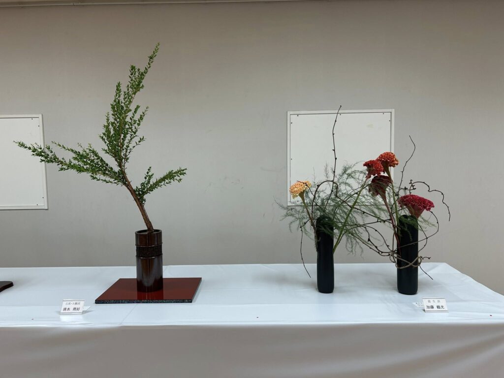 市内各流派の先生方の作品が一堂に展示される華道連盟展。