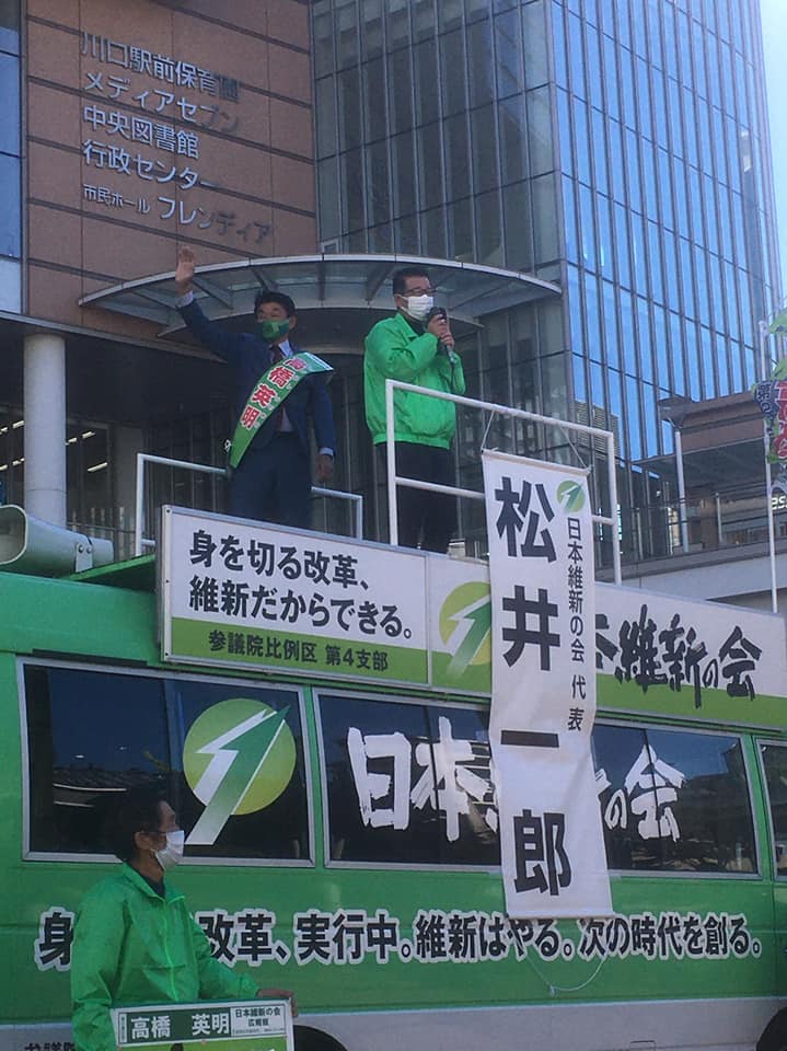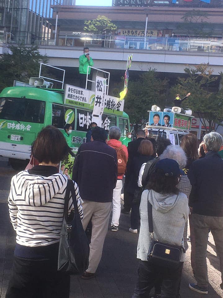 松井一郎代表の演説会の模様は、当日の17:45~テレ玉のニュース