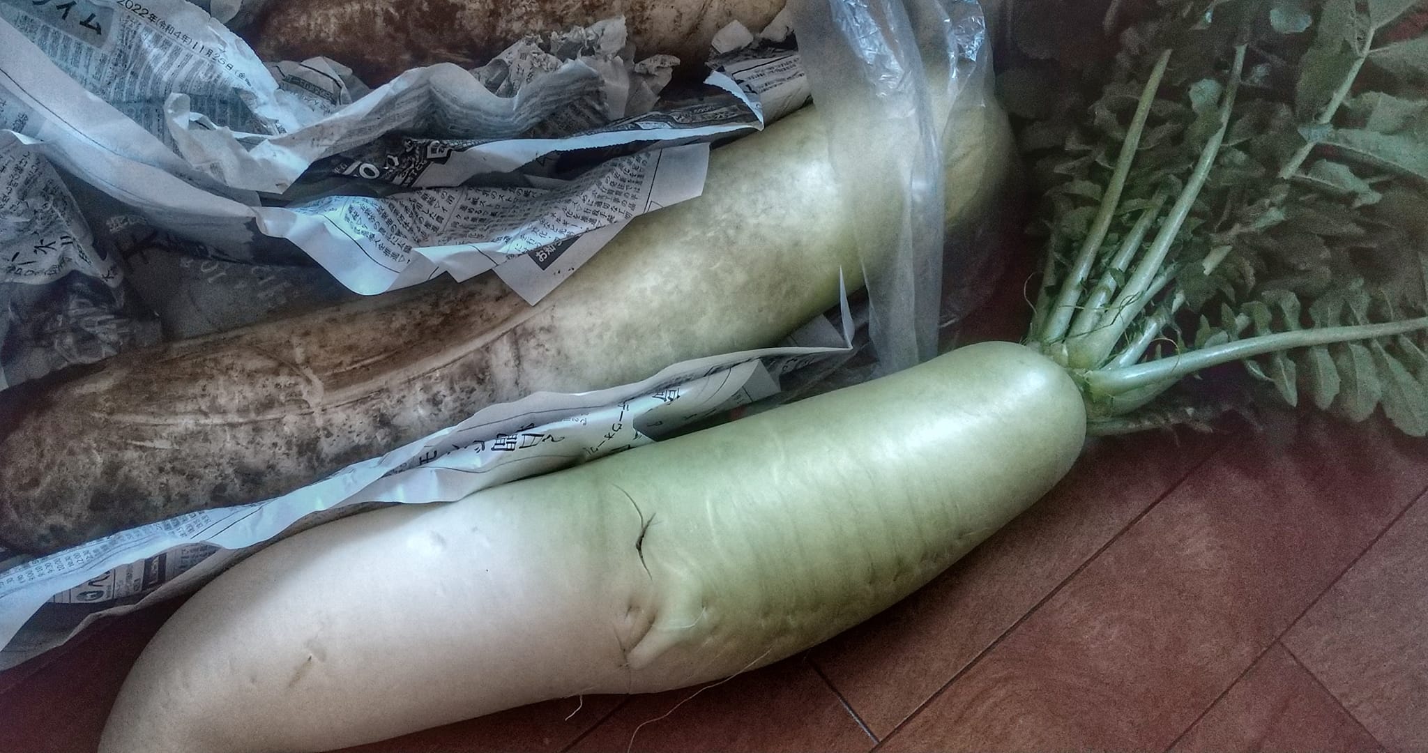 徒歩なのに、1軒目で立派過ぎる大根をいただいて、抱いて歩いていると、通り過ぎる車から何やら視線を感じ…重くて断念。