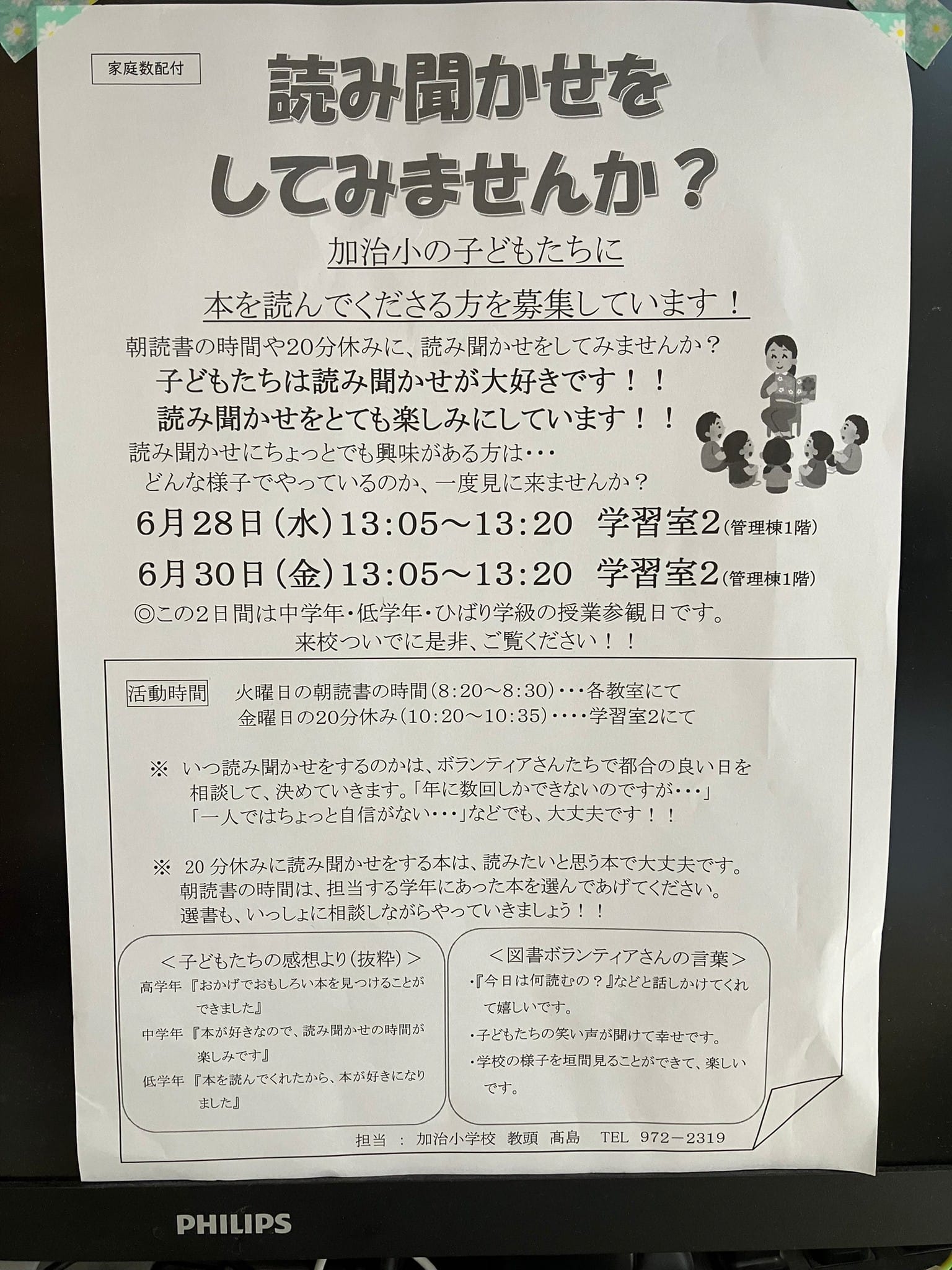 私も、子どもは加治小にいませんし、慣れるまでは年間4回くらい無理なく担当させてもらうところから始めました。