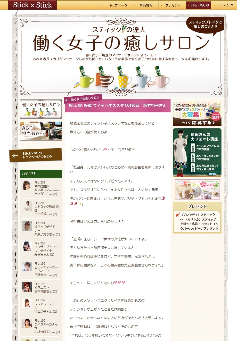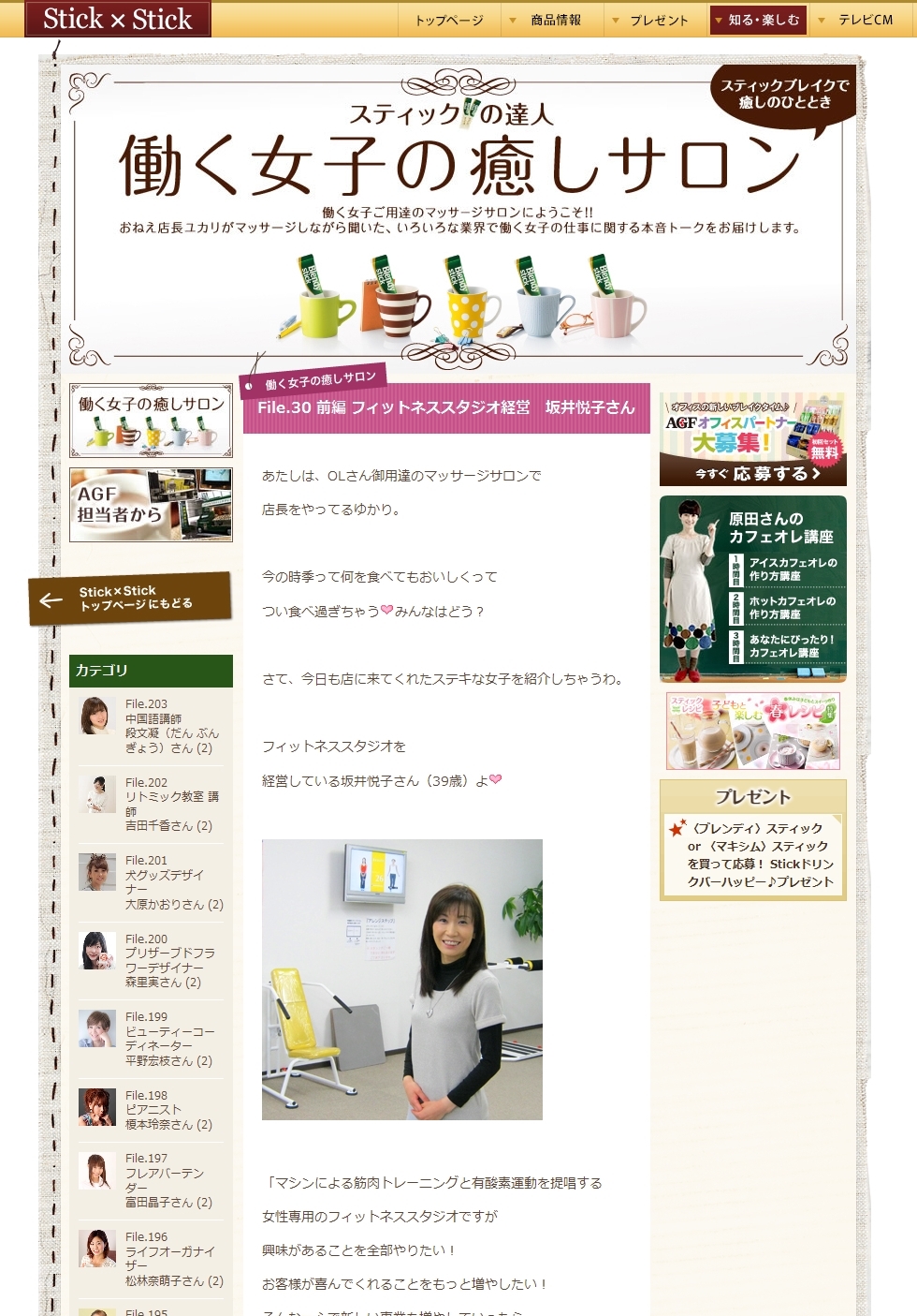 個人事業 掲載元:埼玉県ベンチャー支援センター 掲載元:読売新聞 文化新聞 2017年2月17日 文化新聞にて出馬表明させていただきました 企業さまニュースレターなど AGF スティックコーヒー「Stick×Stick」 スティックの達人 働く女子の癒しサロン レストランイーズパッション